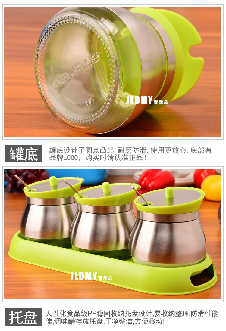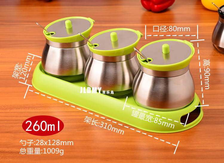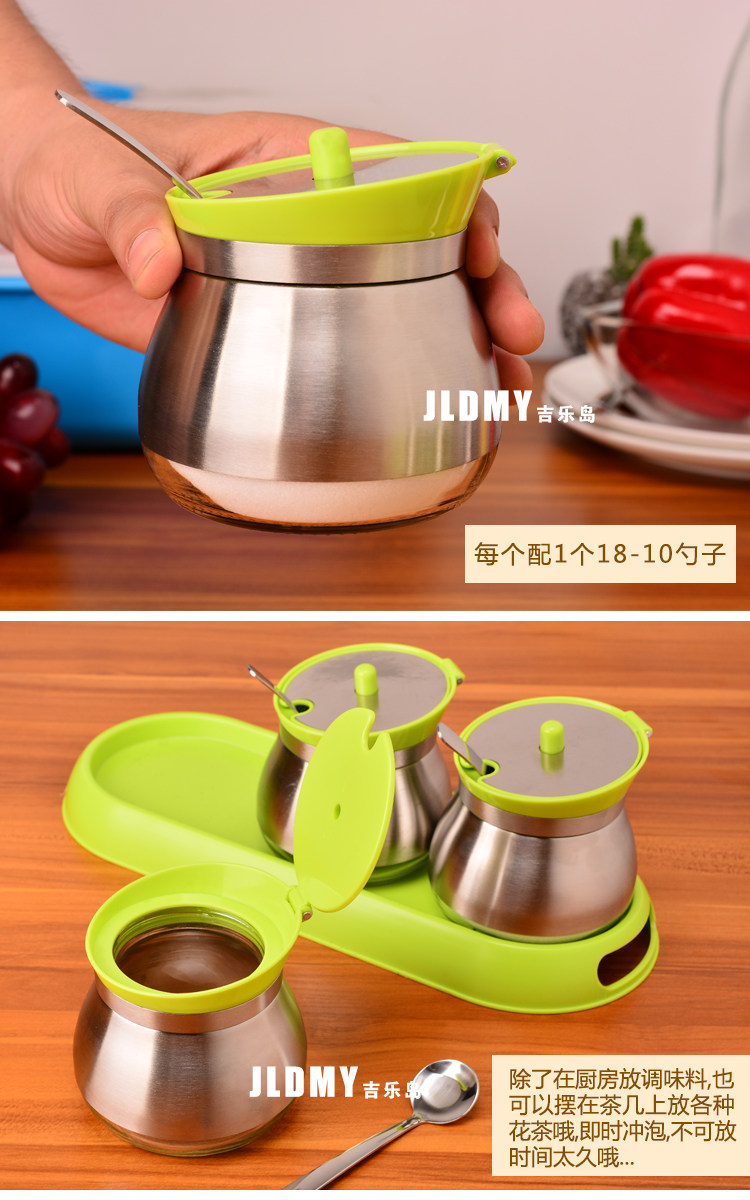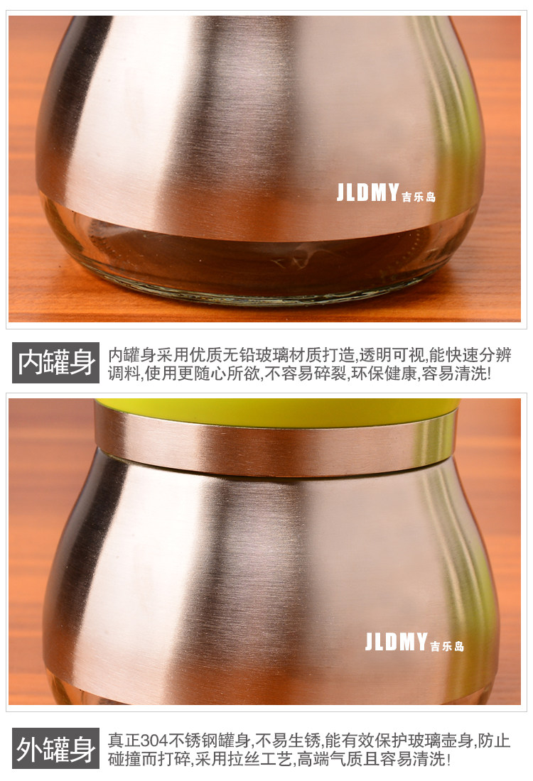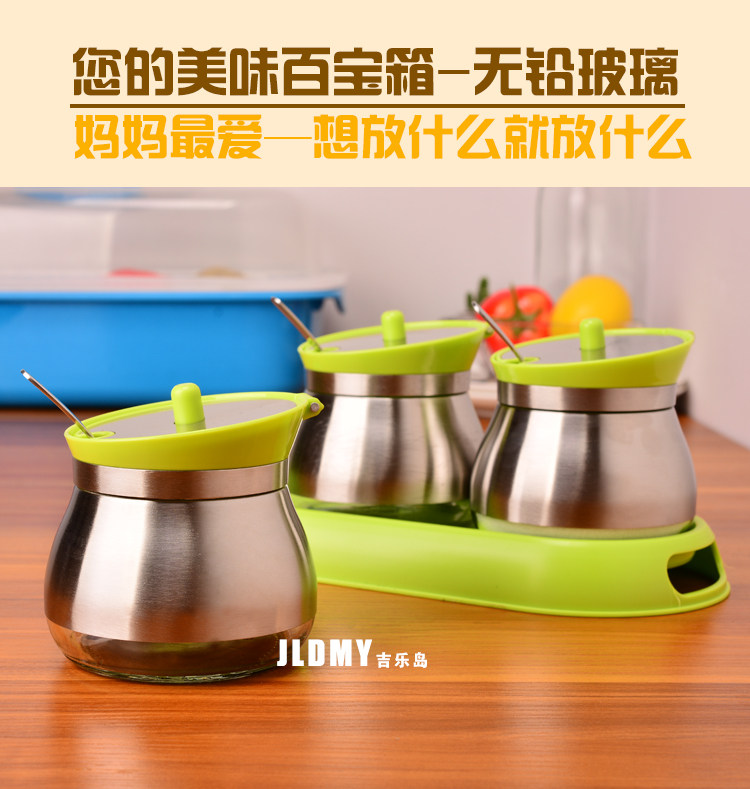 【名称】304不锈钢无铅玻璃调味罐3件套