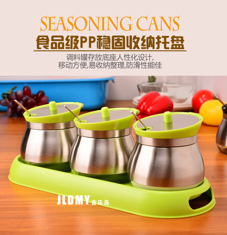 【组合】3件套:3个调味罐+3把勺子+1个托盘