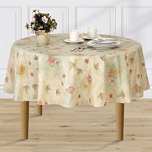 -. Feature : DECOR: Widely spaced peony flowers in shades of pale yellow and purple. Delicate green leaves accent the flowers against a sage and light gold background that will protect and dress up any table. / PERFECT FOR: Indoor and outdoor dining. Lovely and versatile for entertaining, picnics, birthdays, dinner, BBQ's, special occasions, everyday meals and more! / CARE: For best results use mild soap solution with damp cloth or sponge on vinyl surface. Do not iron.