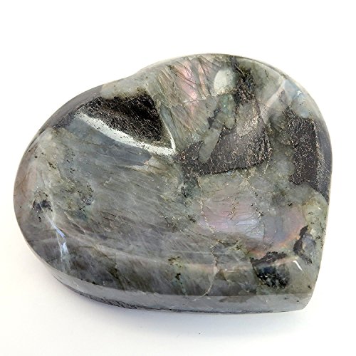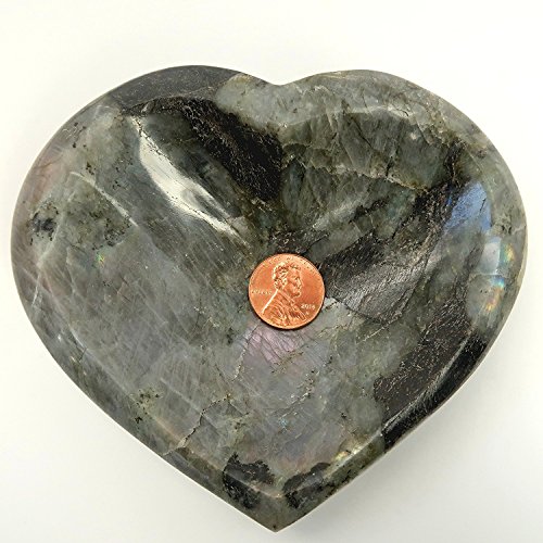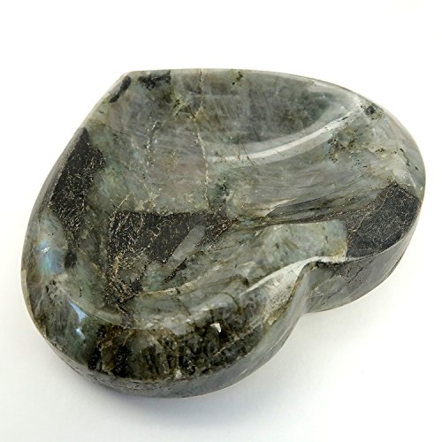 One-of-Kind: Natural Labradorite is polished into your new crystal healing heart dish. Labradorite is prized for its brilliant blue-green and yellow rainbow flashes.