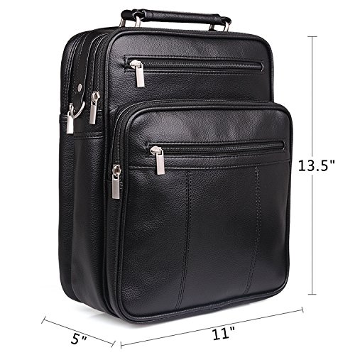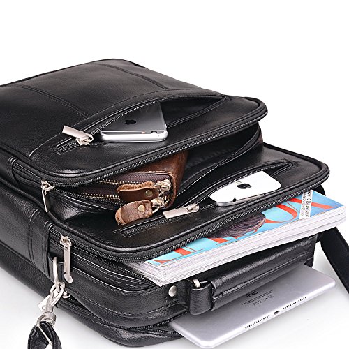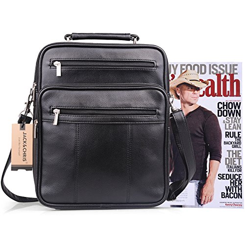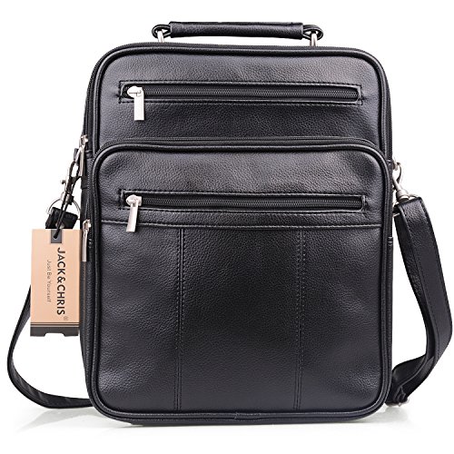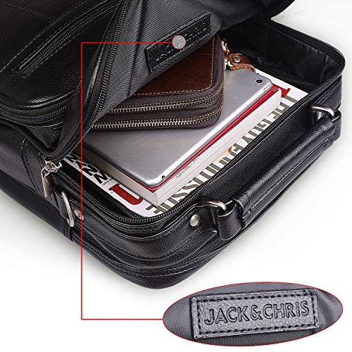 -. Brand : Jack&Chris -. Color : Black -. Department : mens -. EAN : 4015289364794 -. Feature : Dimension: 11"(28cm) x 13.5"(34.5cm) x 5"(12.8cm), large enough to hold A4books / iPad/Galaxy Tab S 10.5 / Material: High Quality PU Leather / Structure: 2 main pocket, 3 front zipper pocket, 1 rear zipper, 4 plastic nails in the bottom for safe & clean protection. / Adjustable strap with metal buckle (appr. 80 ~ 138cm) for comfortable carrying. / [Jack&Chris] is a trademark registered in the US,UK and other countries.Any unauthorized sellers will certainly bear the legal consequences of Copyright Infringement. -. PackageQuantity : 1 -. ProductGroup : Apparel -. ProductTypeName : LAGE -. Size : Medium -. Title : Jack&Chris®Mens Leather Crossbody Single-Shoulder Briefcase Messenger Handbag,MBYX020