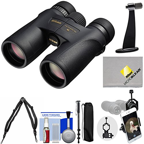 Nikon Monarch 7 10x42 ED ATB Waterproof / Fogproof Binoculars with Case + Harness + Smartphone and Tripod Adapters + Monopod + Cleaning Kit