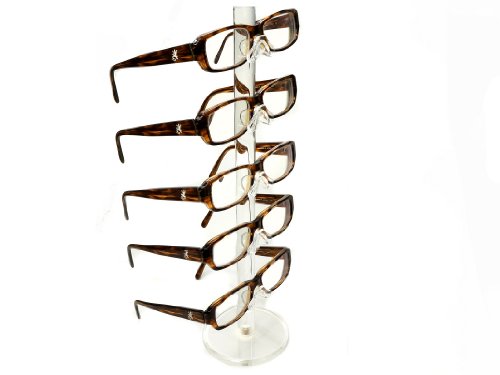 -. Feature : 5 Tier eyeglass display stand / Clear Acrylic / It measures approximately 33cm (13") tall / Self assembly required. / Please noted that larger size glasses may not fit.