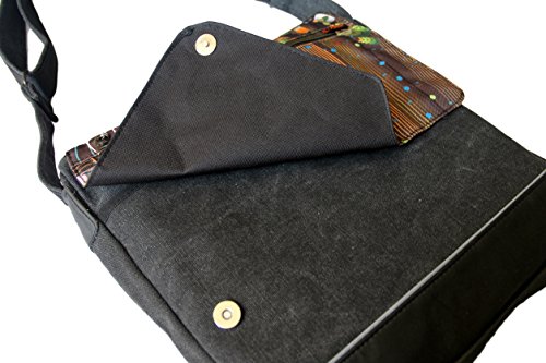 -. Binding : Electronics -. Brand : CatchBags -. Color : Multi-color pattern -. EAN : 0675595315534 -. Feature : Smartly designed multi-function versatile go any-where day handbag is ideal for travel, work, school, sports, and active life style. Easily carries ipads or small laptops up to 13", drinking flask, glasses, keys and more. / FEATURES: Interior - Large compartment with small pocket organizer and mesh separator to secure items. Exterior - 3 pockets (back and front) and flap (with zipper) for keys and phone. / QUALITY: Many smart details - wide, 2-layer, 2-tone canvas strap, contrasting bidirectional zippers pulls and detail near the bottom edge, durable materials, and unique design. / DIMENSIONS: approximately: 14 x 12 x 2 inch (h x l x w). Adjustable strap to is 58 x 1.5 inch. / MATERIALS: Eco friendly 100% heavy cotton canvas and 60/40% PVC polyester material (PVC is water resistant, looks and feels like soft expensive leather, will not scratch). -. Label : 70s UP -. Manufacturer : 70s UP -. ProductGroup : PC Accessory -. ProductTypeName : CARRYING_CASE_OR_BAG -. Publisher : 70s UP -. Studio : 70s UP -. Title : Canvas Crossbody Shoulder Travel Eco Friendly Bag -. UPC : 675595315534