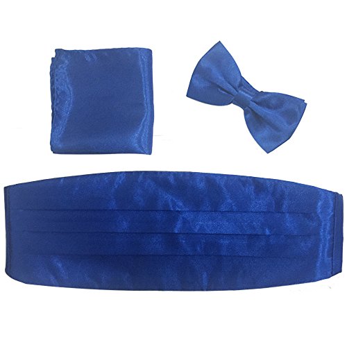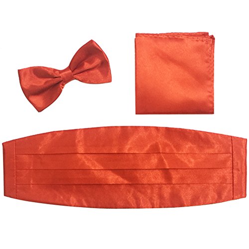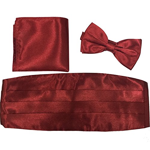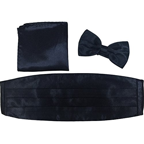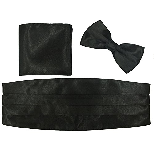 Product Description Cummerbund set includes a cummerbund, bow tie and handkerchief,AND made with very high quality 100% satin polyester which gives it the perfect silk like look.Perfect for any formal occasion like, wedding, musical band, graduation, celebration and any other black tie occasion. 0