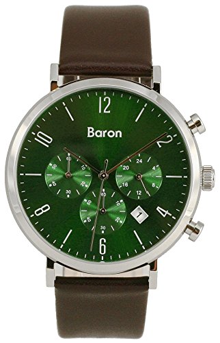 -. Title : [バロン]Baron 腕時計 クロノグラフ ウォッチ 革ベルト 日付 表示 グリーン × ブラウン BR-MJ010 メンズ