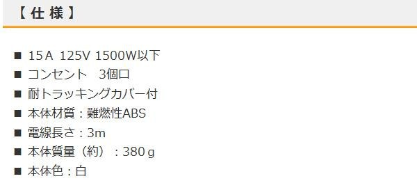 プラグ部は耐熱性ユリア樹脂素材でトラッキング火災を防止します。丈夫な二重被ふくコードです。 生産国:中国 ※サプライヤー直送品 ご注文後2~3営業日後の出荷となります【商品名】OHM キャップ付きタップ 3個口 3m 白 HS-TW33L25W