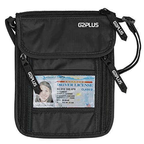 -. Title : G2PLUS Neck Pouch Holder, Travel Passport Wallet with RFID Blocking, Security Passport Holder for Men and Women