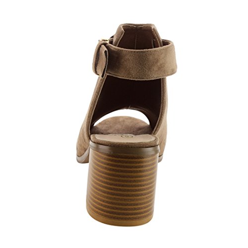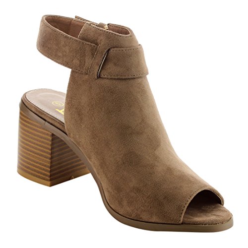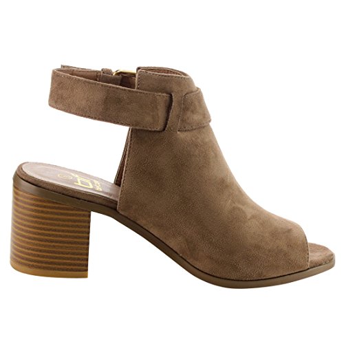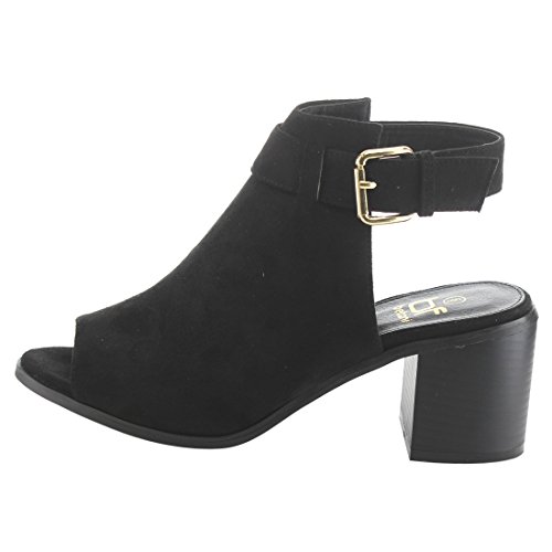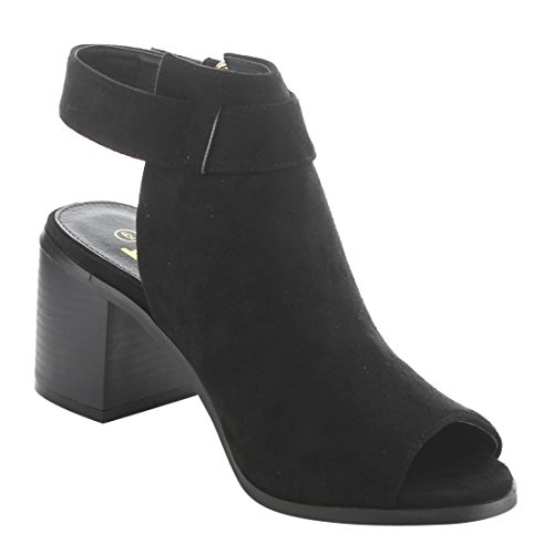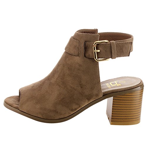BETANI EI26 Women's Ankle Buckle Strap Backless Peep Toe Chunky Heel Booties