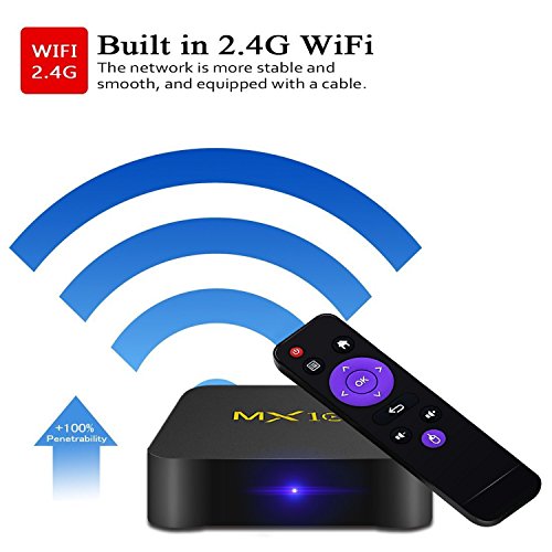 -. Feature : •Newest OS & Infrared Remote Control: Comes with Android NOUGAT 7.1 operation system, the latest Quad-Core 64bit Cortex-A53 chipset, and a Penta-Core HD Graphics GPU, which make sure the box running stable and smooth to load movies, pictures and games without buffer, no need to wait for wonderful moment. Android 7.1 is higher version than Android 6.0. Infrared remote control will be more sensitive than general remote control. / •4GB Ram + 32GB Rom: Get ready to start steaming your favorite TV shows, movies or sporting events through hundreds of streaming apps that come on the smart box or are available through the app store! Support Amazon, eBay, Wish, SKYPE video call, MSN, facebook, twitter, QQ etc. / •Videos In 3D 4K Resolution and H.265 VP10 Decoding: Not a single detail will be missing while your movie and games are in 4K (4096x2160) ultra HD. powerful H.265 decoding loads pictures by taking half time and half occupation of bandwidth of H.264 decoding, it is much more efficient and faster than the old tv box with only H.264 decoding. The MX10 tv box support 4k and 3D movie, no need go to the cinema to watch 3D movie. / •Get Your Home Theater: Once connected MX10 with your WIFI or Ethernet cable, then your standard TV become into a smart streaming machine player. You can play thousands of android games in a large screen smoothly. Install your favorite apps and enjoy advanced technology. Support external Hard drive (up to 1tb) and Largest Micro sd card (up to 32G), support mouse and keyboard via USB. It is so easy to have a joyful and convenient life with SCS ETC MX10 Android TV Box. / •More Multi-Functions: 4 USB ports, 1 AV port, 1 SPDIF port, 1 HD port, support U disk and U HDD disk. Support VP10 4k x 2k H.265 Hardware Video Decode and 4k x 2k Output; Built in 2.4G WIFI, 100M/1000M Ethernet and Hardward 3D graphics acceleration; 4GB DDR4 RAM & 32GB EMMC Flash; Comes with IR Remote.