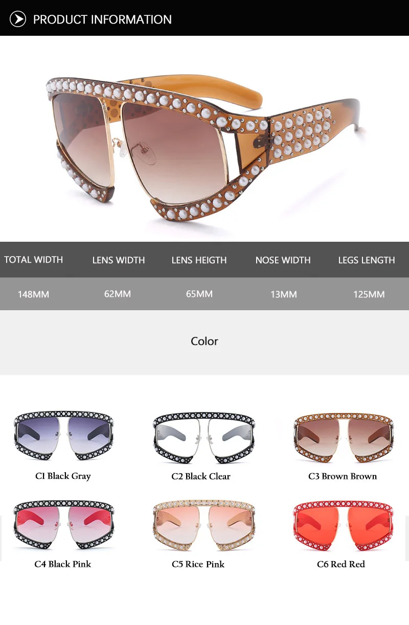 Model Number:H0157- Italian Brand Designer Big Pearl Sunglasses Women Men Oversized
