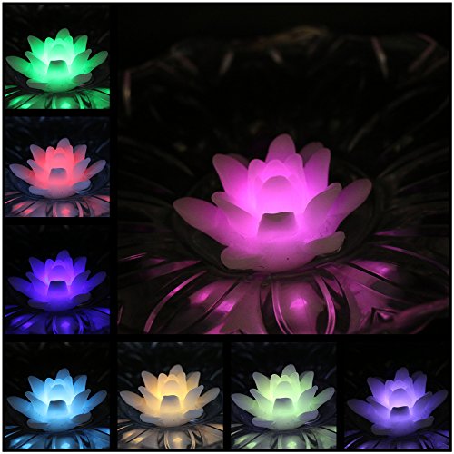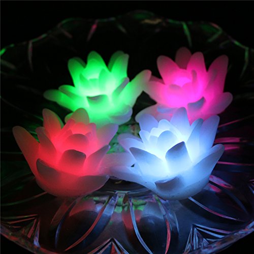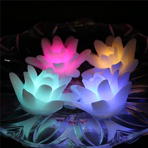 (Pack of 4) Flameless Wax LED Water Floating Lotus Candle Light for Wedding or Event Decoration./LED Floating Candle Light in Flower shape (Multi-color)