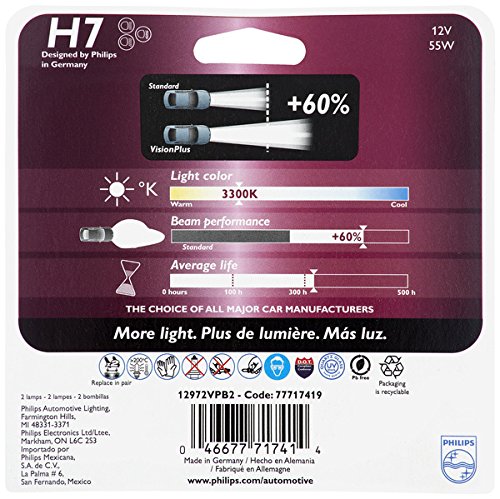 Philips H7 VisionPlus Upgrade Headlight Bulb, Pack of 2