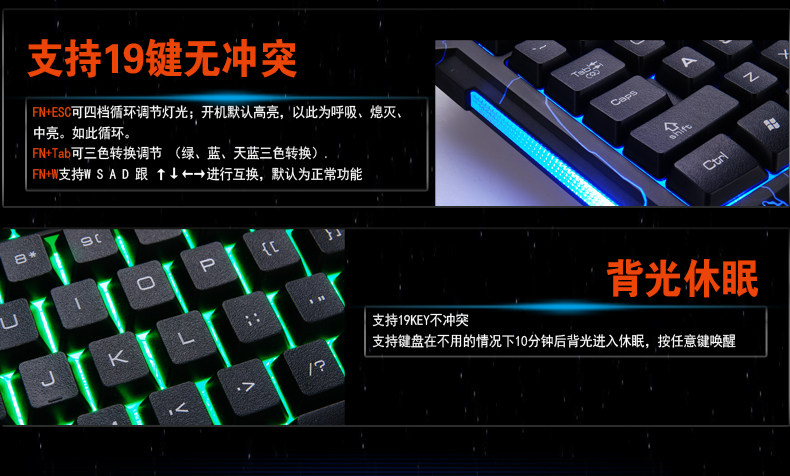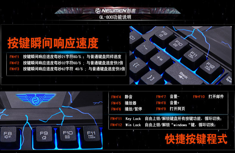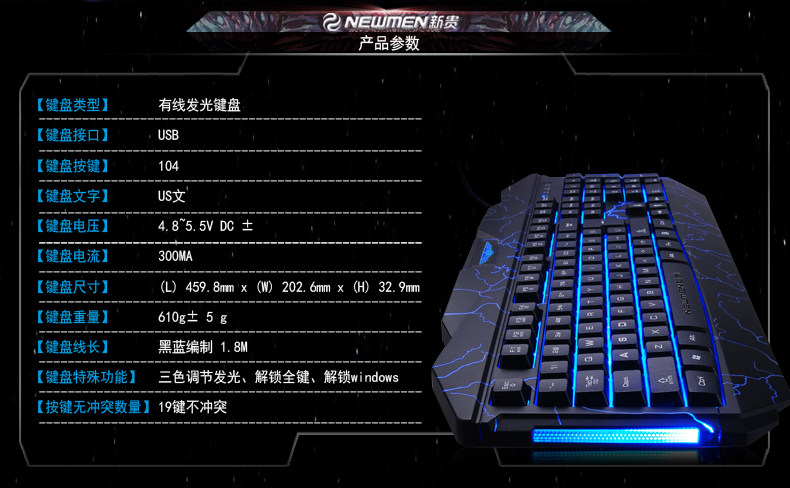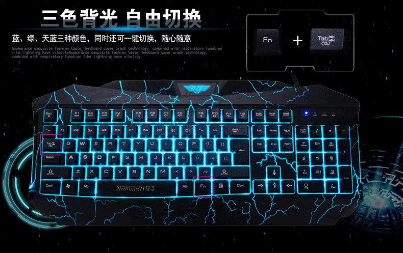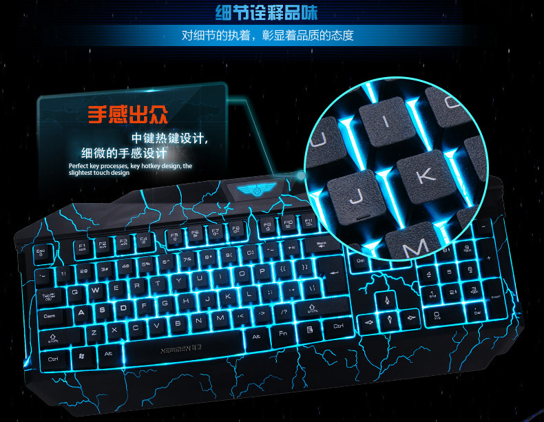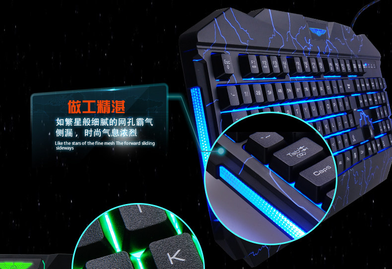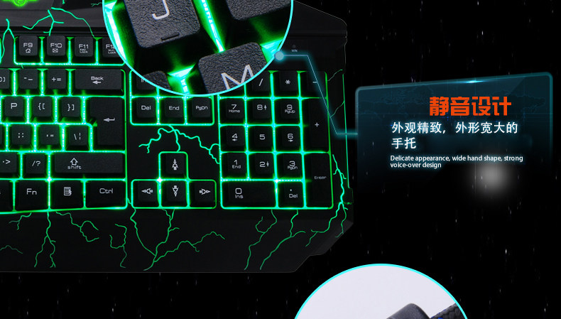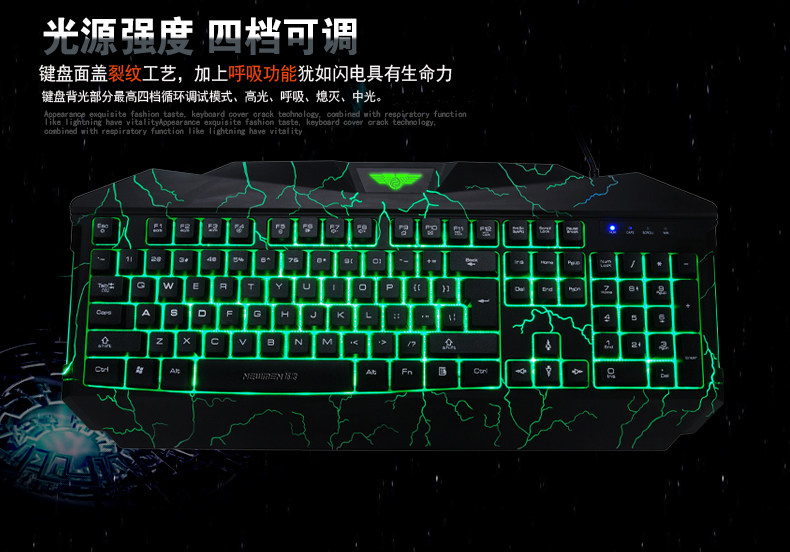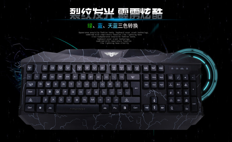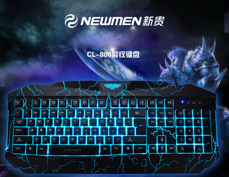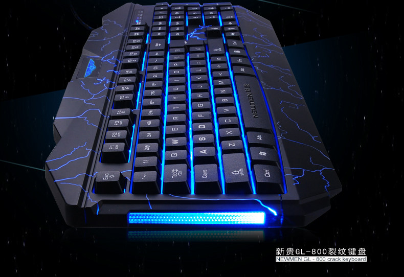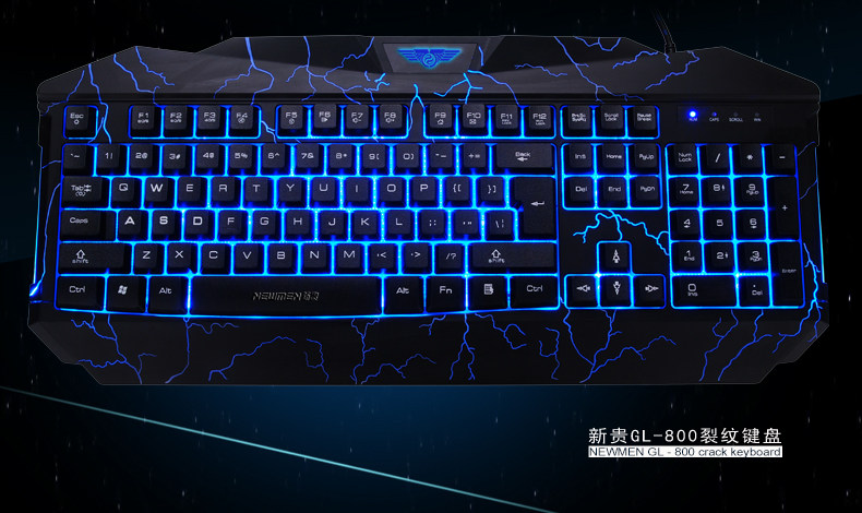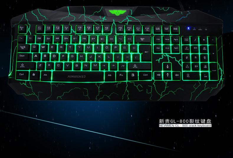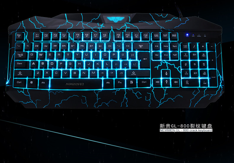 新贵GL-800裂纹背发光USB有线游戏键盘静音防水笔记本电脑台式机