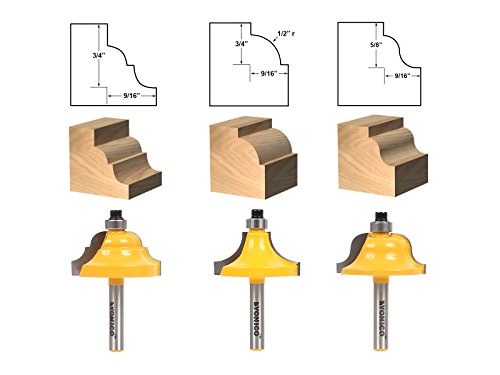 Yonico 13322q 3 Bit Edge Molding Router Bit Set with Large Designer 1/4" Shank