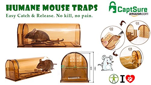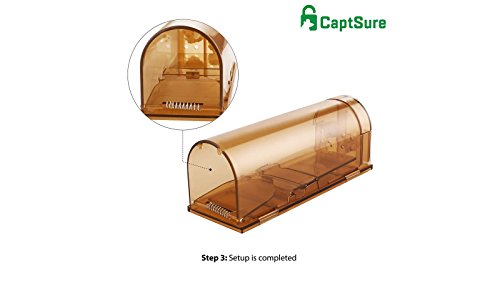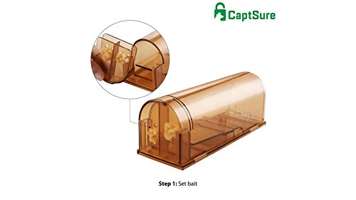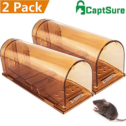 CaptSure Humane Smart Mouse Trap, Live Catch and Release Rodent Trap Cage Box, No Kill/Pain, Children & Pet Safe, For Indoor / Outdoor, Reusable, Best Small Mice Bait Catcher That Works (2 Pack)
