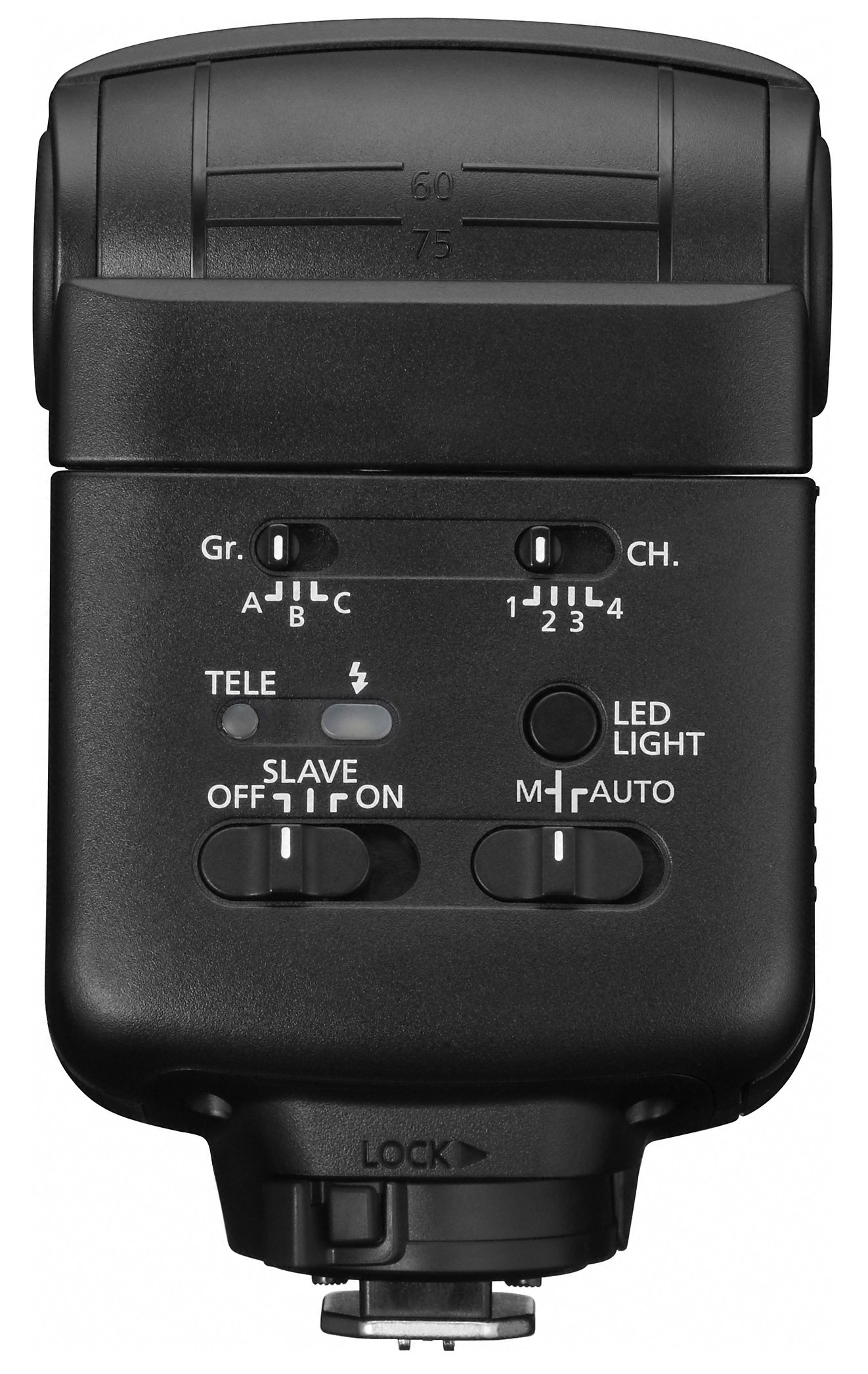 Remote control transmission function * 1, full-fledged flash equipped with LED light, capable of switching guide number 24/32 and bouncing left and right upwards.