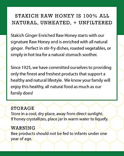 -. Title : Stakich GINGER Enriched RAW HONEY - 100% Pure, Unprocessed, Unheated - 40 oz