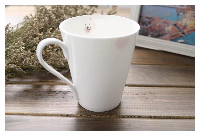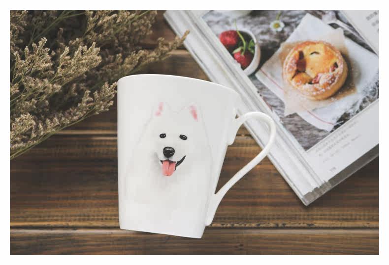 萨摩耶创意简约陶瓷杯马克杯大容量可爱小动物咖啡杯办公室花茶杯