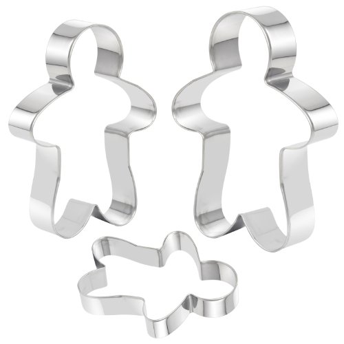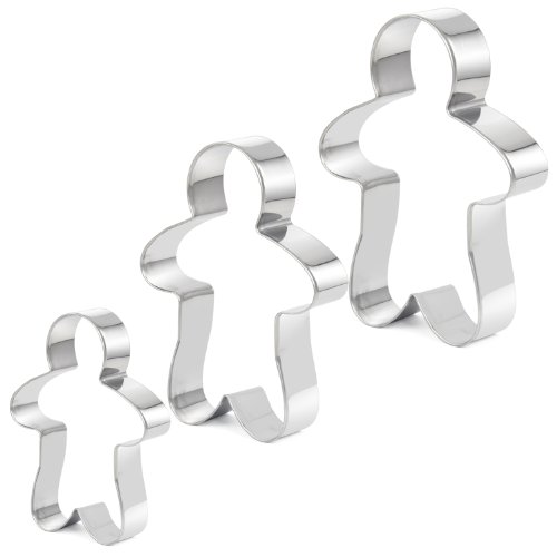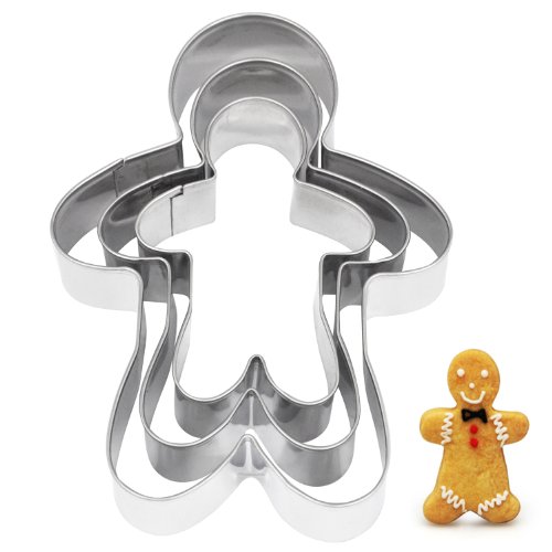 TRIXES 3 Piece Ginger Bread Man Cookie, Biscuit, Pastry Cutters Stainless Steel 12.5cm, 10cm & 8cm