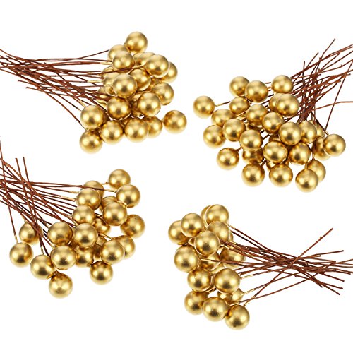 - Package contains: 100 pieces adorable tiny fake berries on wire stems, each wire is mounted with a gold berry at one end