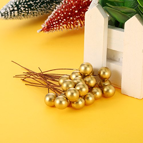 BBTO Artificial Holly Berries, 100 Pieces Mini 10 mm Fake Berries Decor on Wire for Christmas Tree Decorations Flower Wreath DIY Craft Use (Gold)