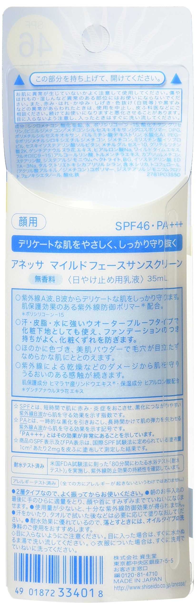 Shiseido ANESSA Mild Face Sunscreen 35ml - SPF46 PA+++ (Japan Import)