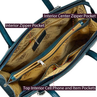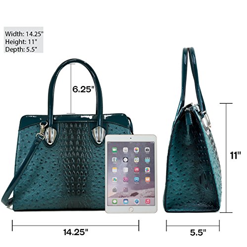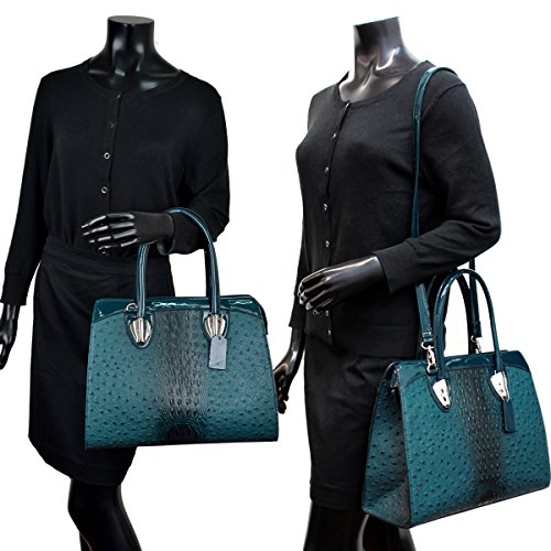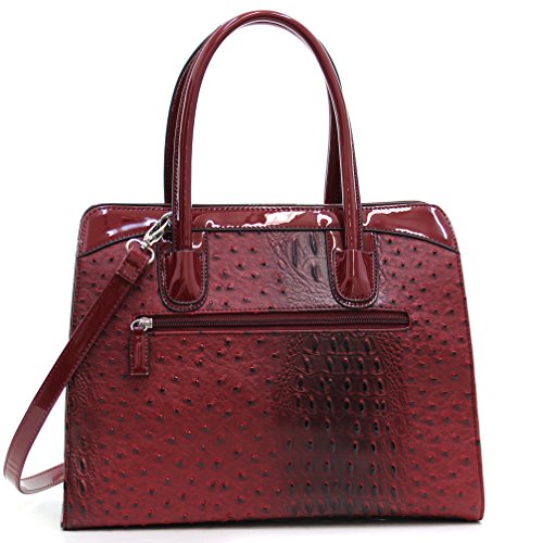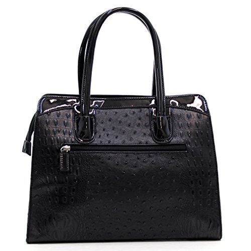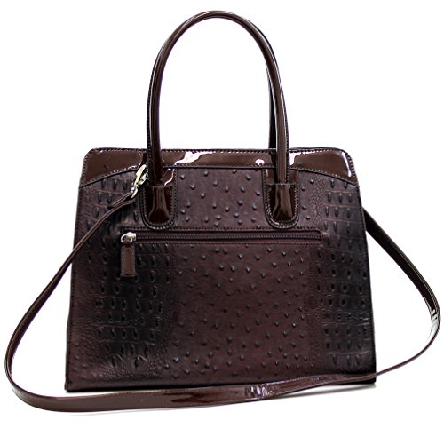 -. Brand : Dasein -. Color : Multicoloured -. Department : womens -. Feature : [Materials]: Made of high quality faux ostrich leather with faux patent leather trim; Signatured fabric lining in light color to make finding things easier; Silver tone hardware / [Design]: This structured work satchel handbag purse features top zipper closure, dual stitched and rolled handles and removable long shoulder strap / [Roomy Space]: Exterior with rear zip pocket; Fully-lined interior with 1 zip pocket and 2 slip multifunctional pockets and a center zip divider. This beutifully crafted tote has space for all of your work supplies plus wallet, keys and those essential items to get you through your day / [Dimensions]: Approx. (bottom)14.25"W x 11"H x 5.5"D; Handle Drop: 6"; Strap Length: end to end 42" / [Shipping]: Excellent customer service 100% NO RISK money back guarantee; Ship from Amazon warehouse; FREE Standard Shipping in Contiguous United States; Find storefront of Fashlets, more surP.R.Ises are waiting for you -. Model : 2591-303059 -. ProductGroup : Shoes -. ProductTypeName : HANDBAG -. Title : Dasein Women's Ostrich Embossed Structured Top Handle Convertible Tote Work Satchel with Shoulder Strap