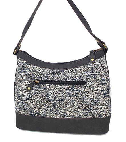 -. Brand : Simply Noelle -. Color : Charcoal -. Department : womens -. EAN : 0051716552666 -. Feature : Textured, structured and detailed in animal friendly vegan faux leather, this collection is sophisticated and highly functional! / This hobo is an updated classic handbag that will take you from season to season. Single strap with a zipper top. The tapestry style fabric has a dramatic effect. Pretty shimmery thread is sewn into the design and makes this even more beautiful in person! / Interior has zip and slip pockets and hobo styles hold all your essentials. / Exterior has one zipper pocket. Note: This color is called black, but it actually a deep charcoal and very neutral gray. / Dimensions: 12.75 x 5 x 11. -. Model : NO-HB219 Black -. ProductGroup : Shoes -. ProductTypeName : HANDBAG -. Size : Medium -. Title : Simply Noelle Solstice Hobo Bag in Black -. UPC : 051716552666