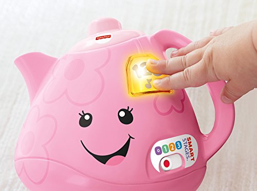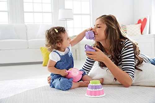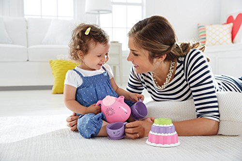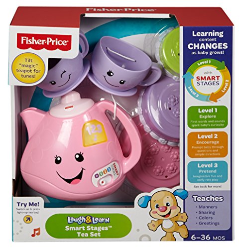 Time to share a pot of tea—with two pretty cups, a sweet cake (three stackable layers), and plenty of Smart Stages songs, sounds and fun phrases to go around! Introduce the delights of pretend play while helping baby learn about sharing, manners, colors, greetings and more. She’s sure to thank you! Smart Stages Tea Set includes Smart Stages technology, an exciting new way to change learning content as baby grows. Every baby develops at their own pace, and Smart Stages gives you the ability to select the stage that’s best for your child! There are a variety of developmentally appropriate songs, phrases and sounds within three levels of play—just slide the switch, or enter baby’s age for automatic level changes.Feature