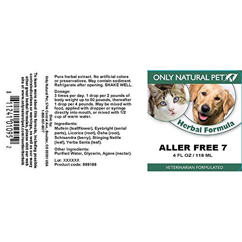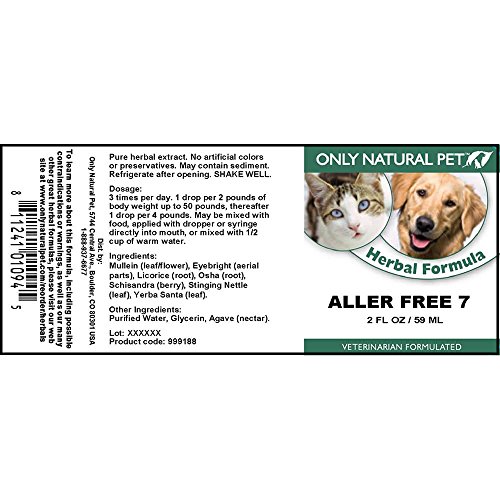 -. Binding : Misc. -. Brand : Only Natural Pet -. Feature : For Pet Type(s): Dogs & Cats / Completely Natural / ApproP.R.Iate for all ages and breeds -. Label : Only Natural Pet -. Manufacturer : Only Natural Pet -. MPN : 999187 -. NumberOfItems : 1 -. PackageQuantity : 1 -. PartNumber : 999187 -. ProductGroup : Pet Products -. ProductTypeName : PET_SUPPLIES -. Publisher : Only Natural Pet -. Studio : Only Natural Pet -. Title : Only Natural Pet Aller-Free 7 Herbal Formula