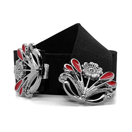 -. Feature : Silver hook flower buckle fastening / Stretchy elastic / 1 Inch wide elastic / Please see the sizing measurements in the description below