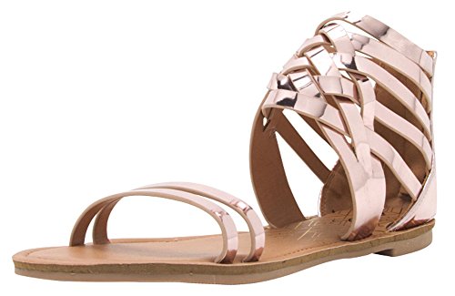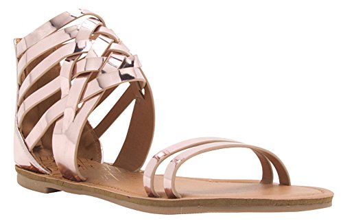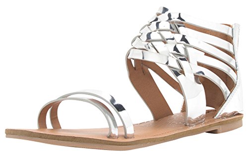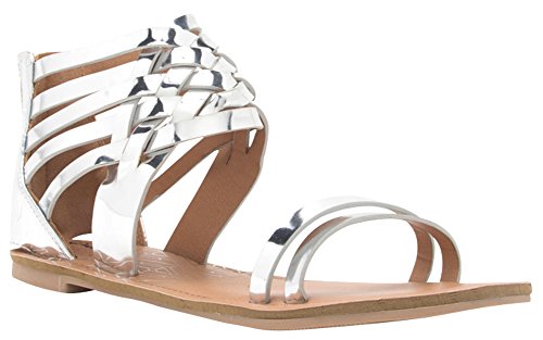 Product DescriptionThis flat sandal from Cambridge Select features double vamp and woven ankle straps, back zipper, and low, flat heel. Imported.0