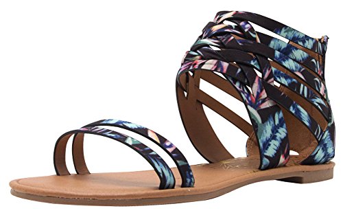 Cambridge Select Women's Open Toe Crisscross Ankle Strappy Flat Sandal