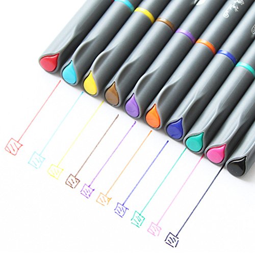 -. Feature : 10 Pack in brilliant colors, 0.38 mm fine point. / Superb for watercolor paint on paper,the colors can be scattered with water and mixed perfectly. / Color pen set with superfine, outstanding performance in all areas. / Easy and comfortable to write. Especially used by the designers for drawing lines and signing. / Perfect for coloring books, doodling, comics and manga illustration and much more.