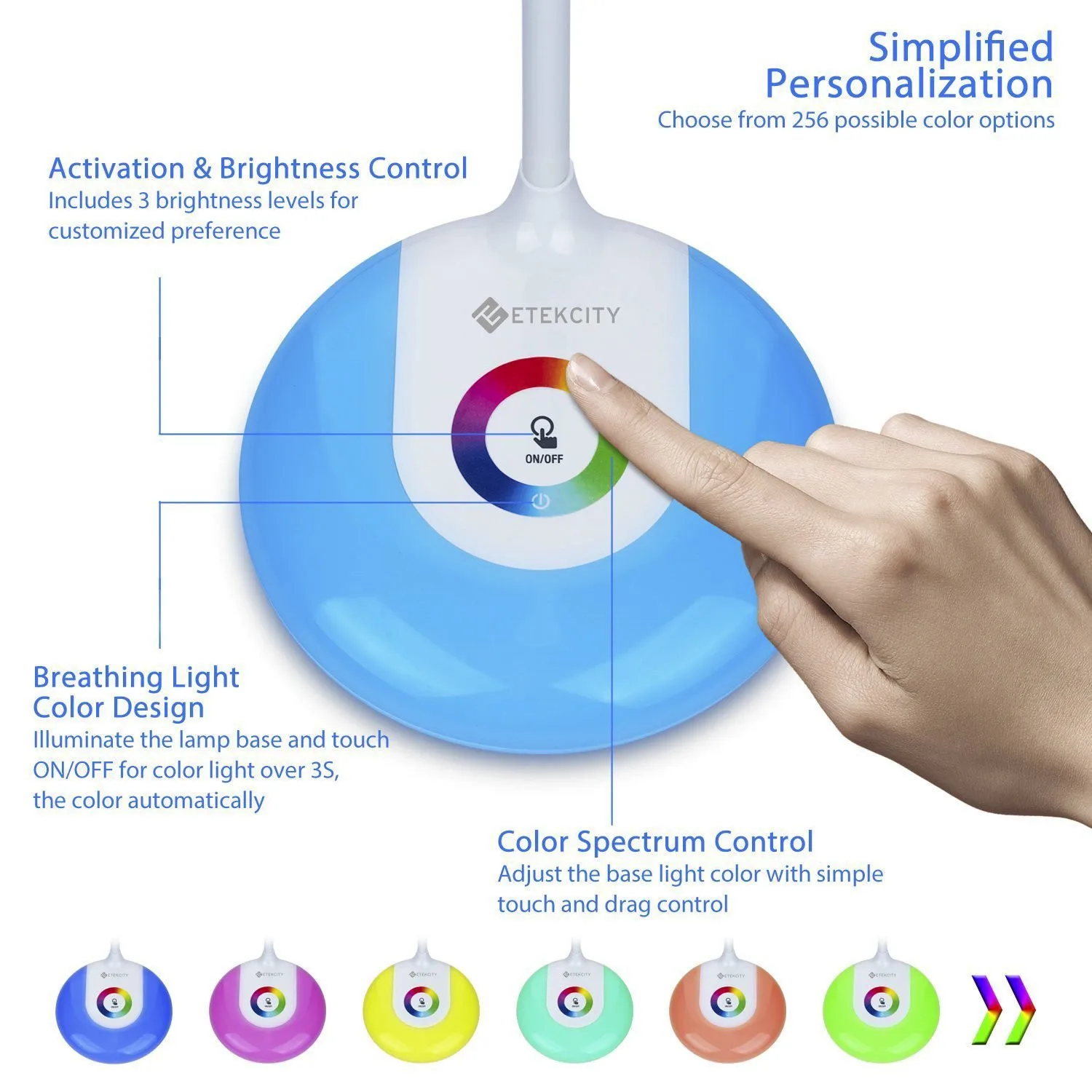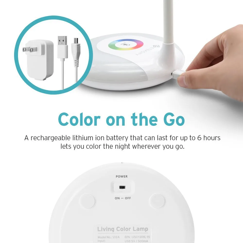 - LED Desk Lamp with Flexible Gooseneck Adjustable Brightness Level Night Light, 1000mAh Rechargeable Eye-caring Colorful Table Light with USB Port Touch Control (256 Base Color)