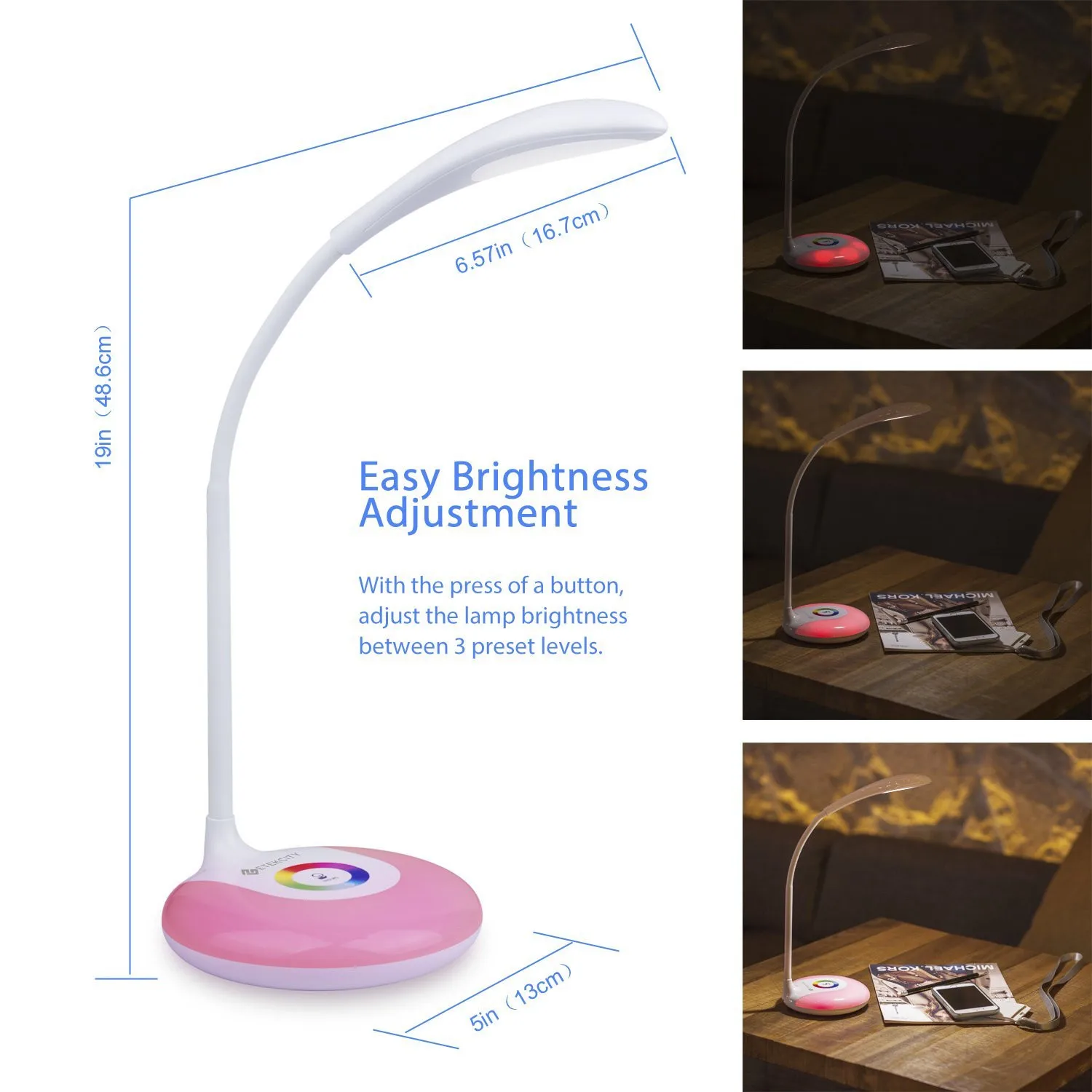 USB Port Touch Control Colorful LED Desk Lamp with Adjustable Brightness Level
