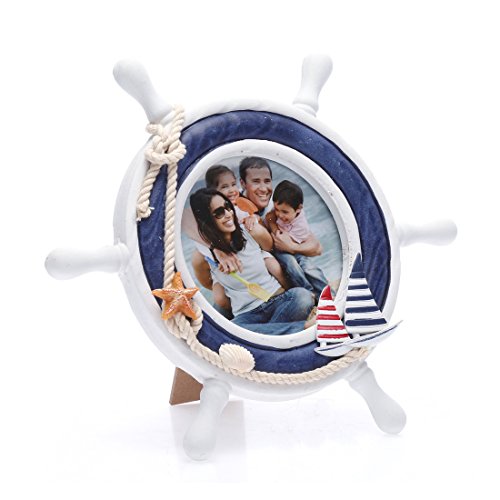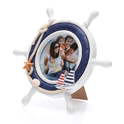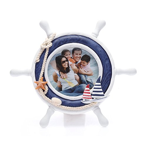 -. Title : 4x4 Inches Nautical Steering Wheel Round Picture Frame with Glass Front