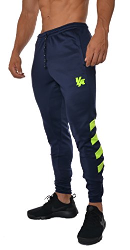 YoungLA Mens Soccer Training pants tapered fit 5 colors Large navy/neon