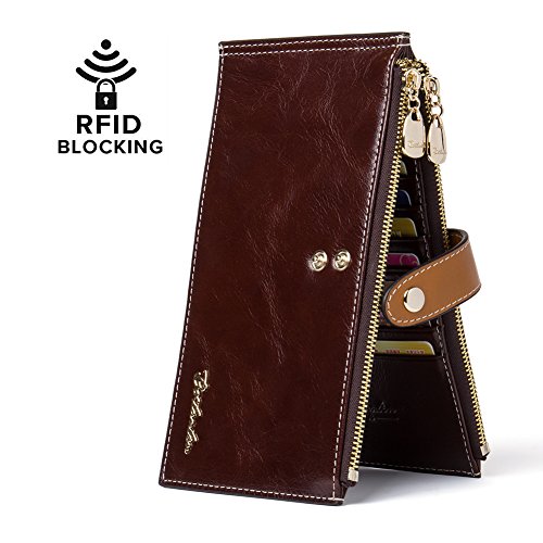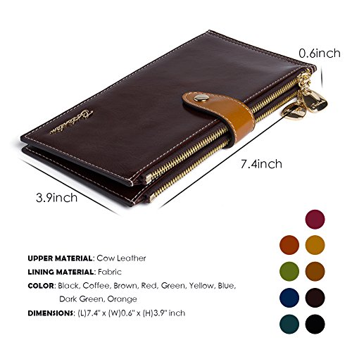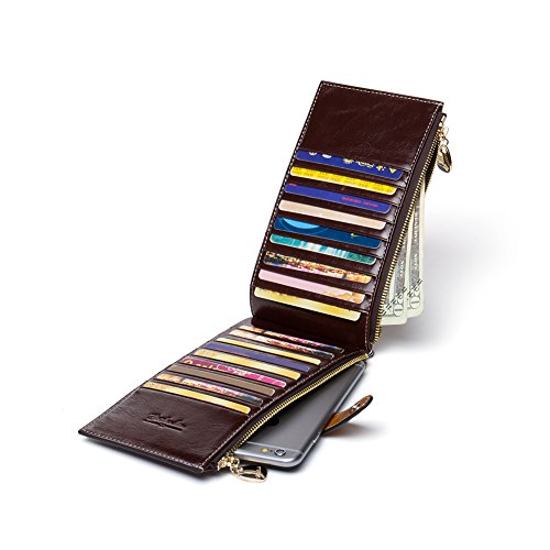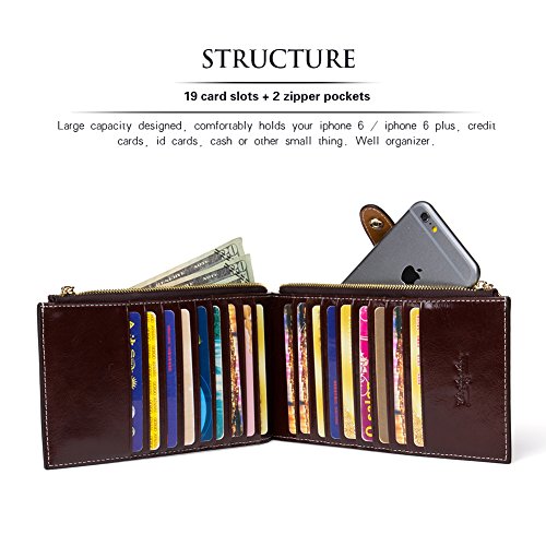 INTERNAL STRUCTURE: This leather wallet contains 19 card slots; 2 zipper pockets are capable for all your cash, coins, or mobile phone, combination of zipper closure and magnetic bottom keeps your money safer.
