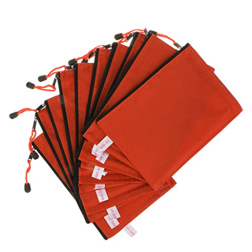 10Pcs A4 Size Plastic Zippered Document Folder File Bags Office Supplies - Orange, 34*24cm