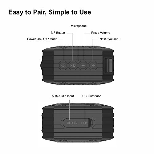 -. Title : Wireless Bluetooth Speaker, Portable Shower Speaker and Outdoor Waterproof Speaker with IP67 Standand, 5W Speaker Driver Super Bass, 19 Hours Playtime and Built-in Mic Speakerphone