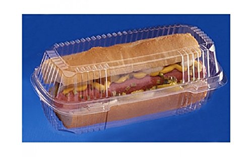 Studio : Pactiv Publisher : Pactiv Binding : Health and Beauty Product Description Clear hinged lid containers with audible click closure. Containers have great clarity to show off the product. SmartLock® lid provides a leak resistant seal to lock in freshness. Features a tight, audible click closure that helps ensure maximum food freshness. Wide temperature resilience range (20 to 180 °F) enables placement in freezers and heated display cases. Smooth front panel makes sticker-labeling easy. Strong, rib-reinforced sides and back accommodate heavy items and provide enhanced crush resistance. Break-resistant hinge is flexible enough for easy closure and reliable enough for repeated openings and closingsHoagie / Hot Dog Sandwich Clear Hinged Lid Plastic Container 6" x 21/2" x 2 1/2" (Pack of 25) 0