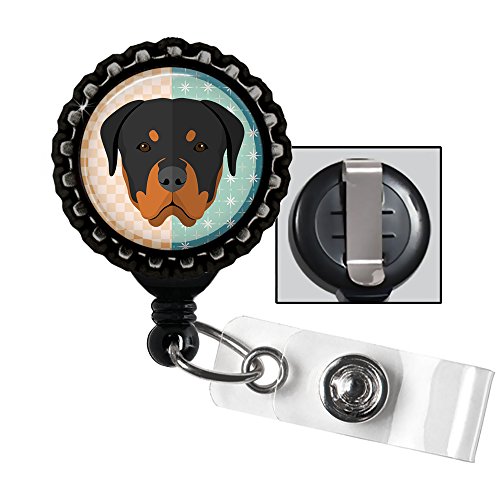 Cute Rottweiler - black ID holder, retractable badge reel, black and tan dog