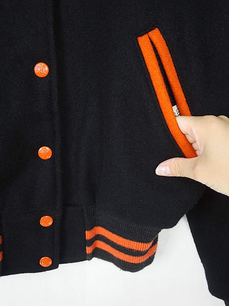Ladies ブランド- カラー黒・オレンジ メール便不可 コンディション★★★ 素材ウール 表記サイズ34 スタッフコメント右胸上付近に素材ダメージあり。スナップボタンにキズあり。 実寸サイズ 着丈 前61.5・後58.5 cm 身幅 52.5 cm 肩幅 45 cm 袖丈 59 cm ※ウエスト・ヒップ以外は平置き採寸