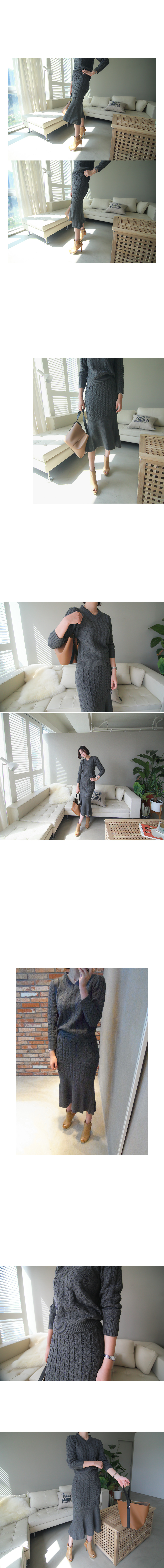 케이블 짜임 특유의 따스함 느껴질정도로 무게감 있는 투피스