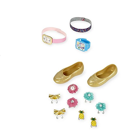 -. Title : Journey Girls Doll Accessories Bundle of 2 Items: One JG Gold Flats Set & One - JG Wrist Wear Set