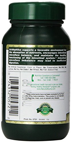 -. Feature : Acidophilus supports a favorable environment for the absorption of nutrients, encourages intestinal microflora balance, and promotes the healthy functioning of the intestinal system / Nature's Bounty