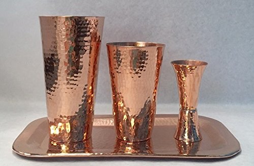 -. Feature : Fluted jigger with graduated measurements on 1 and 2 fluid ounce cups, 18 and 30 fluid ounce Boston shaker set, 12 inch by 7 inch Charolita tray / Elegance and style for the serious connoisseur or professional bartender / Unique style and superior quality, our equipment gives beautiful service that lasts for generations / Heavy gauge, Pure copper from 100% recycled sources for a healthier Environment / Copper is an inherently clean material with strong natural antimicrobial, antibacterial and antifungal properties