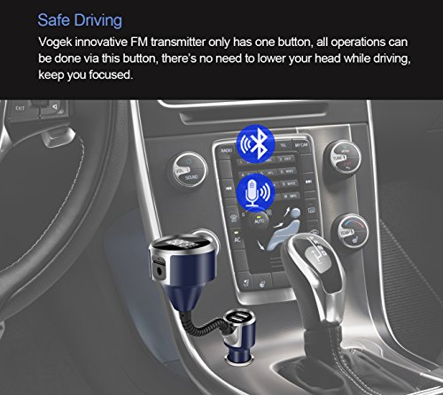 [SAFE DRIVING]: Vogek innovative FM transmitter only has one button, all operations can be done via this button, there's no need to lower your head while driving, keep you focused. Enjoy your favorite music on the road without driving risk